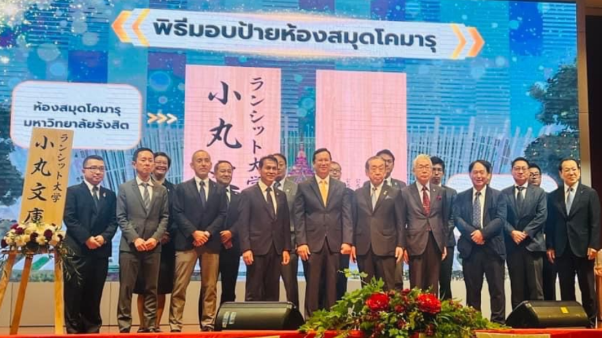 Key activities included the presentation of the "Komaru Library" plaque along with a large collection of Japanese books, supported by the Komaru-Koutsu Foundation and Fukuyama Transporting, Japan. Shigehiro Komaru, President of Fukuyama Transporting, handed over the Komaru Library plaque to Dr. Arthit Ourairat, President of Rangsit University, marking another significant step in enhancing Japanese language learning resources for students.